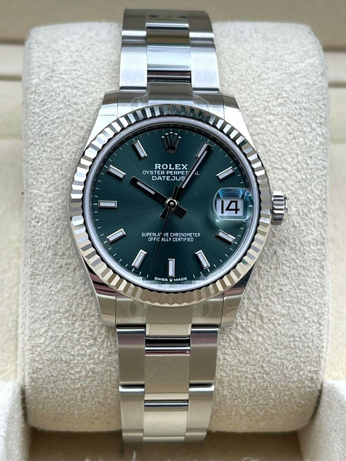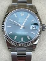 Introducing the Rolex Datejust 31 278274 (Year: 2024) – a testament to timeless design and precision. This piece features a green dial, stainless steel bracelet, and 31 mm steel case, making it a statement piece that effortlessly captures attention.