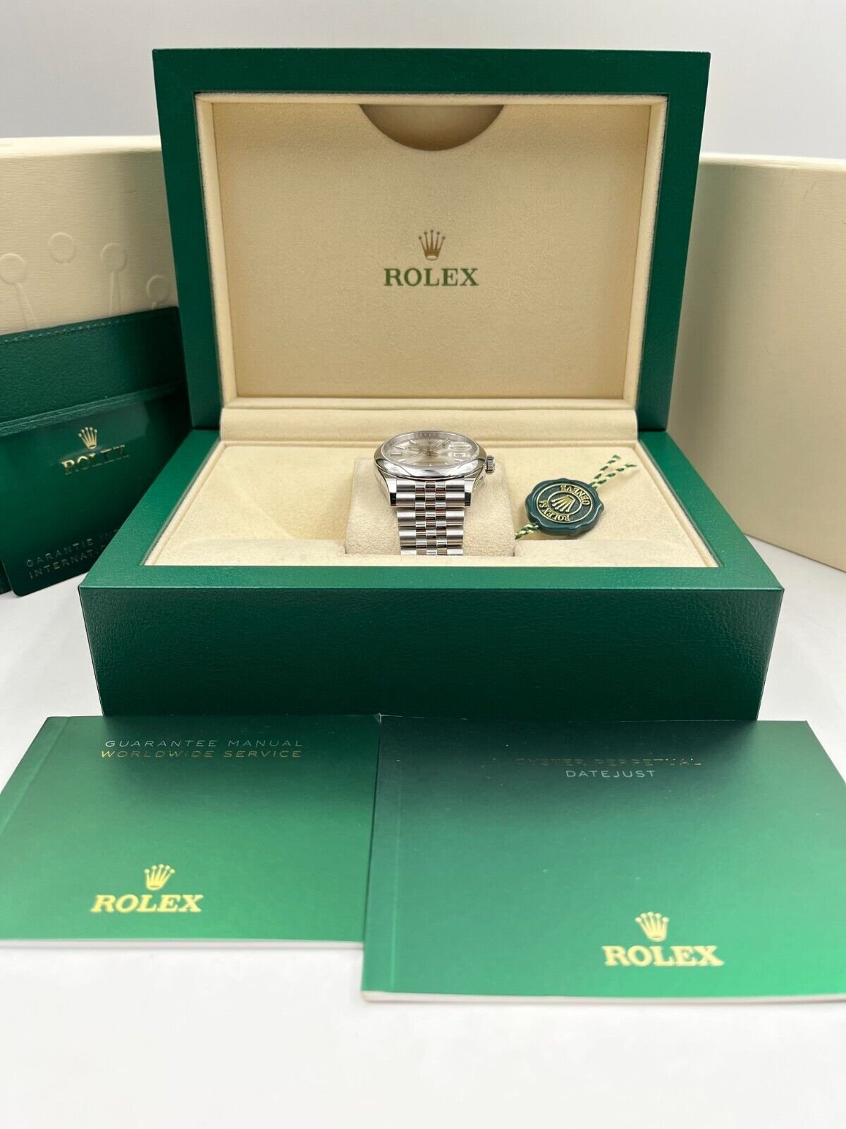 Introducing the Rolex Datejust 36 126200 (Year: 2024) – a testament to timeless design and precision. This piece features a silver dial, steel bracelet, and 36 mm steel case, making it a statement piece that effortlessly captures attention.