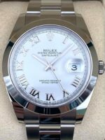 Introducing the Rolex Datejust 41 126300 (Year: 2023) – a testament to timeless design and precision. This piece features a white dial, steel bracelet, and 41 mm steel case, making it a statement piece that effortlessly captures attention.