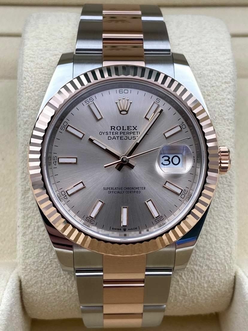 Introducing the Rolex Datejust 41 126331 (Year: 2024) – a testament to timeless design and precision. This piece features a gold dial, two tone rose gold/stainless steel bracelet, and 41 mm steel case, making it a statement piece that effortlessly captures attention.