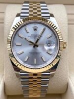 Introducing the Rolex Datejust 41 126333 (Year: 2024) – a testament to timeless design and precision. This piece features a silver dial, two tone yellow gold/stainless steel bracelet, and 41 mm steel case, making it a statement piece that effortlessly captures attention.