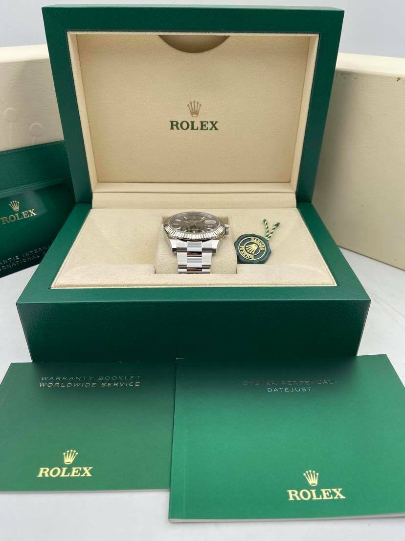 Introducing the Rolex Datejust 41 126334 (Year: 2024) – a testament to timeless design and precision. This piece features a rhodium dial, stainless steel bracelet, and 41 mm steel case, making it a statement piece that effortlessly captures attention.