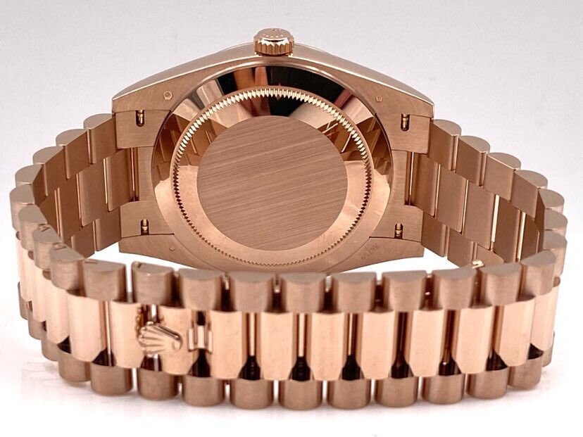 Introducing the Rolex Day-Date 228235 (Year: 2023) – a testament to timeless design and precision. This piece features a gold dial, rose gold bracelet, and 40 mm rose gold case, making it a statement piece that effortlessly captures attention.