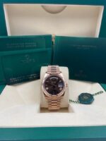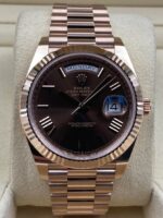 Introducing the Rolex Day-Date 228235 (Year: 2024) – a testament to timeless design and precision. This piece features a brown dial, rose gold bracelet, and 40 mm rose gold case, making it a statement piece that effortlessly captures attention.