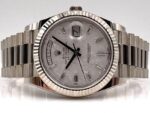 Introducing the Rolex Day-Date 228239 (Year: 2024) – a testament to timeless design and precision. This piece features a silver dial, white gold bracelet, and 40 mm white gold case, making it a statement piece that effortlessly captures attention.