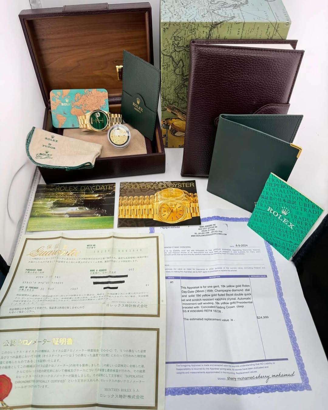 - Solid 18K Yellow Gold Case, Bezel, Bracelet, Crown & Clasp