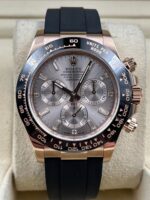 Introducing the Rolex Daytona 116515LN (Year: 2023) – a testament to timeless design and precision. This piece features a sundust dial, rubber bracelet, and 40 mm rose gold case, making it a statement piece that effortlessly captures attention.