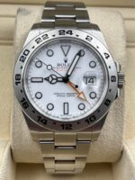 Introducing the Rolex Explorer II 216570 (Year: unknown) – a testament to timeless design and precision. This piece features a white dial, steel bracelet, and 42 mm steel case, making it a statement piece that effortlessly captures attention.