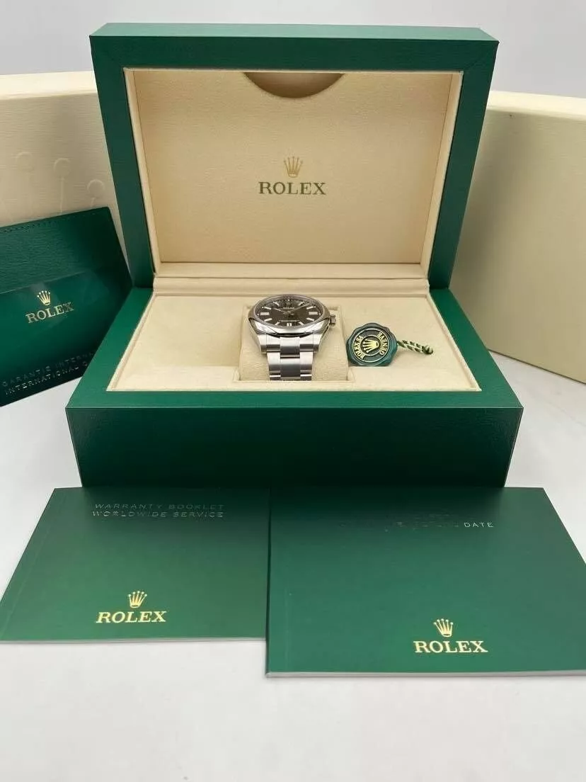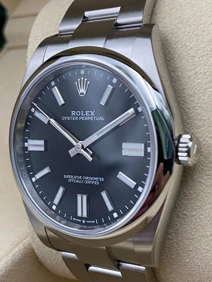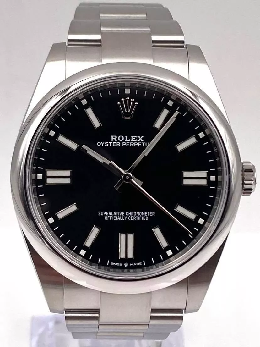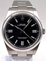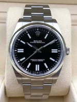 Introducing the Rolex Oyster Perpetual 124300 (Year: 2024) – a testament to timeless design and precision. This piece features a black dial, steel bracelet, and 41 mm steel case, making it a statement piece that effortlessly captures attention.