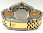 The Jubilee bracelet on this Sky-Dweller (Ref. 336933) elevates the watch’s elegance. This five-link bracelet, crafted from a combination of stainless steel and 18k yellow gold, offers a comfortable and supple fit on the wrist. The polished center links complement the overall luxurious aesthetic, while the concealed clasp ensures a seamless look.