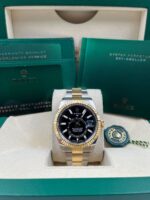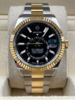 Introducing the Rolex Sky-Dweller 336933 (Year: 2023) – a testament to timeless design and precision. This piece features a black dial, two tone yellow gold/stainless steel bracelet, and 42 mm steel case, making it a statement piece that effortlessly captures attention.