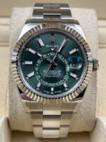 Introducing the Rolex Sky-Dweller 336934 (Year: 2024) – a testament to timeless design and precision. This piece features a green dial, stainless steel bracelet, and 42 mm steel case, making it a statement piece that effortlessly captures attention.