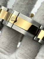 The watch is paired with an Oyster bracelet, combining brushed stainless steel outer links with polished 18k yellow gold center links. Equipped with an Oysterlock clasp and Glidelock extension, the bracelet offers both security and comfort, allowing for easy adjustments.