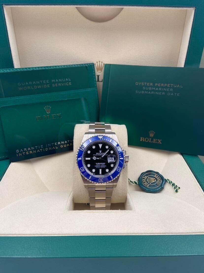 Introducing the Rolex Submariner Date 126619LB (Year: 2023) – a testament to timeless design and precision. This piece features a black dial, white gold bracelet, and 41 mm white gold case, making it a statement piece that effortlessly captures attention.