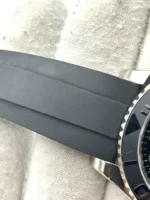 There are some light marks on the case, case back, and clasp from wear. None of the marks are deep in nature. The crystal appears to be free from any major imperfections warranting replacement. The bezel has a scratch that can be seen in the first photo of the listing.