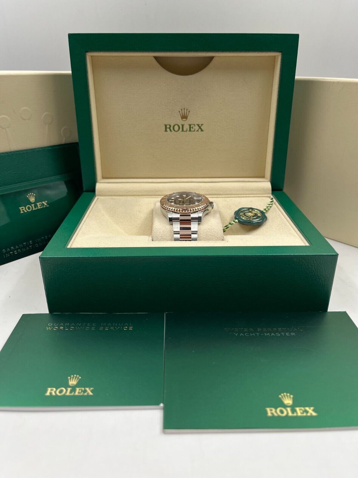 Introducing the Rolex Yacht-Master 268621 (Year: 2023) – a testament to timeless design and precision. This piece features a brown dial, two tone rose gold/stainless steel bracelet, and 37 mm steel case, making it a statement piece that effortlessly captures attention.